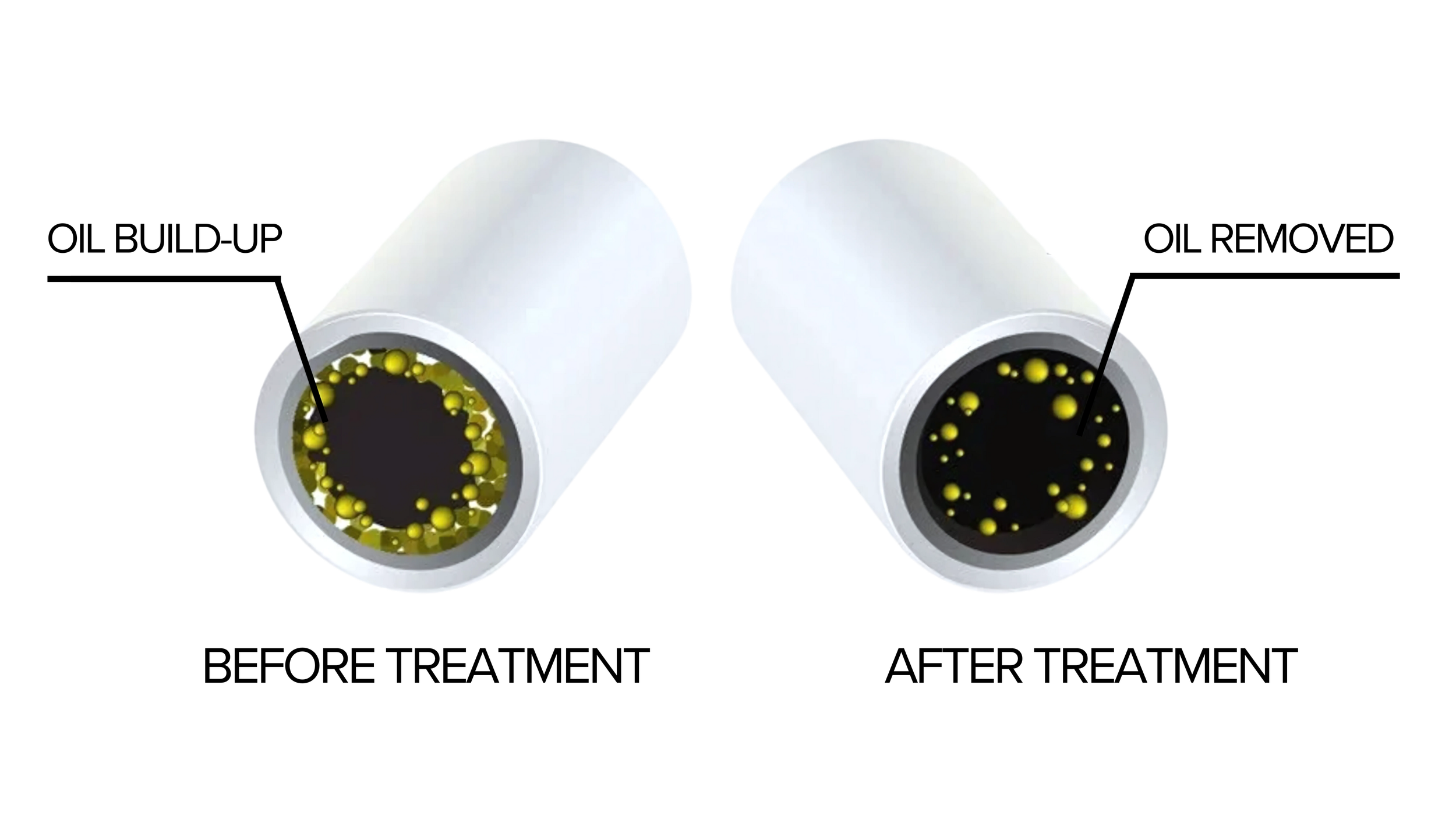 Restores Maximum Energy Efficiency – Displaces oil buildup, ensuring optimal heat transfer and reducing energy waste.